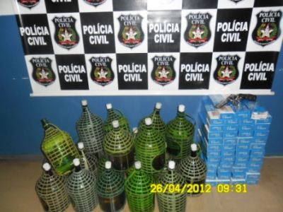 A Polícia Civil de Videira, através da equipe de investigação coordenada pelo Delegado Fabiano Rocha, durante cumprimento de Mandado de Busca e Apreensão num estabelecimento comercial daquela cidade, apreendeu uma arma de fogo, munições de uso restrito e aproximadamente 100 litros de bebida alcoólica de procedência duvidosa. Cerca de 470 carteiras de cigarro de origem estrangeira, também foram recolhidas pelos Policiais Civis.