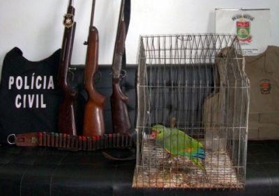 Na ação policial, foram apreendidas três espingardas calibre .32, uma cinta com 17 munições do mesmo calibre, além de um coldre de cintura. A Operação também resultou na apreensão de um papagaio do peito roxo ? animal da fauna silvestre que era mantido em cativeiro.
