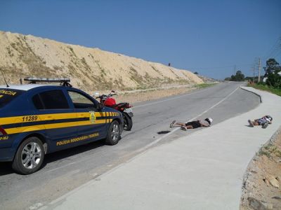 Policiais rodoviários federais de Santa Catarina prenderam ontem à tarde (13/03/2012), em Palhoça, na BR 101, dois rapazes que transitavam em uma motocicleta furtada.