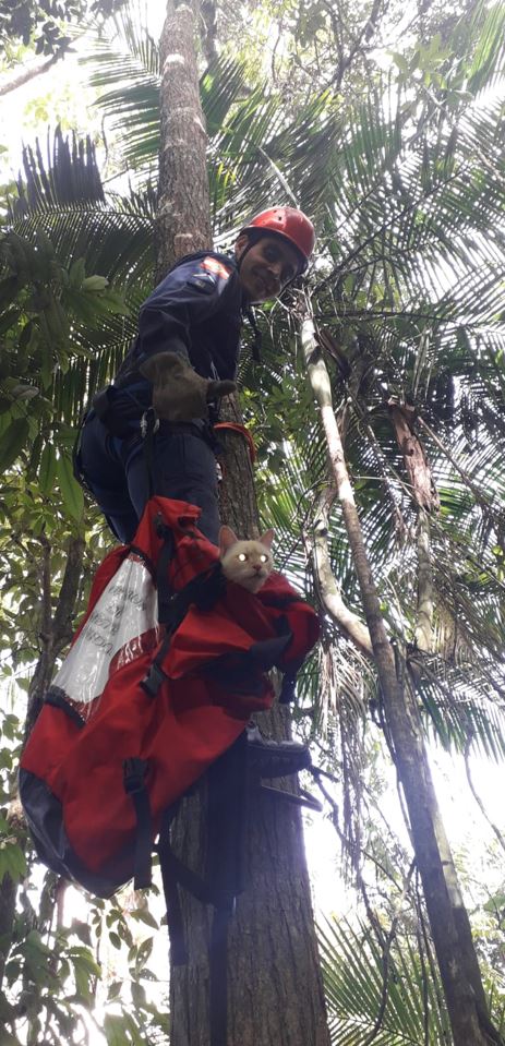 Os bombeiros militares de Gaspar foram acionados na manhã desta segunda-feira, dia 27 de junho, para resgatar um gato que estava preso em uma árvore de 15 metros de altura. O caso aconteceu no bairro Sete de Setembro, em Gaspar.