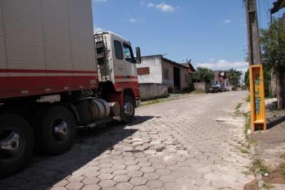 Desde que uma transportadora começou a funcionar próximo à rua Alberto Serafim Schmitt, no bairro São Pedro, há cinco anos, Maria Pereira Schmitt convive com rachaduras na parte da frente de sua casa de alvenaria. Ao lado, a vizinha Teresinha dos Santos reclama que, de tão carregados, caminhões com contêineres fazem a sua residência, de madeira, balançar mais do que o normal. ?Aqui não poderia passar?, afirma Crailton Mota, vizinho das donas de casa. Enquanto a reportagem do Cruzeiro do Vale estava no local, por cerca de meia hora, três carretas e dois caminhões de menor porte passaram na via.