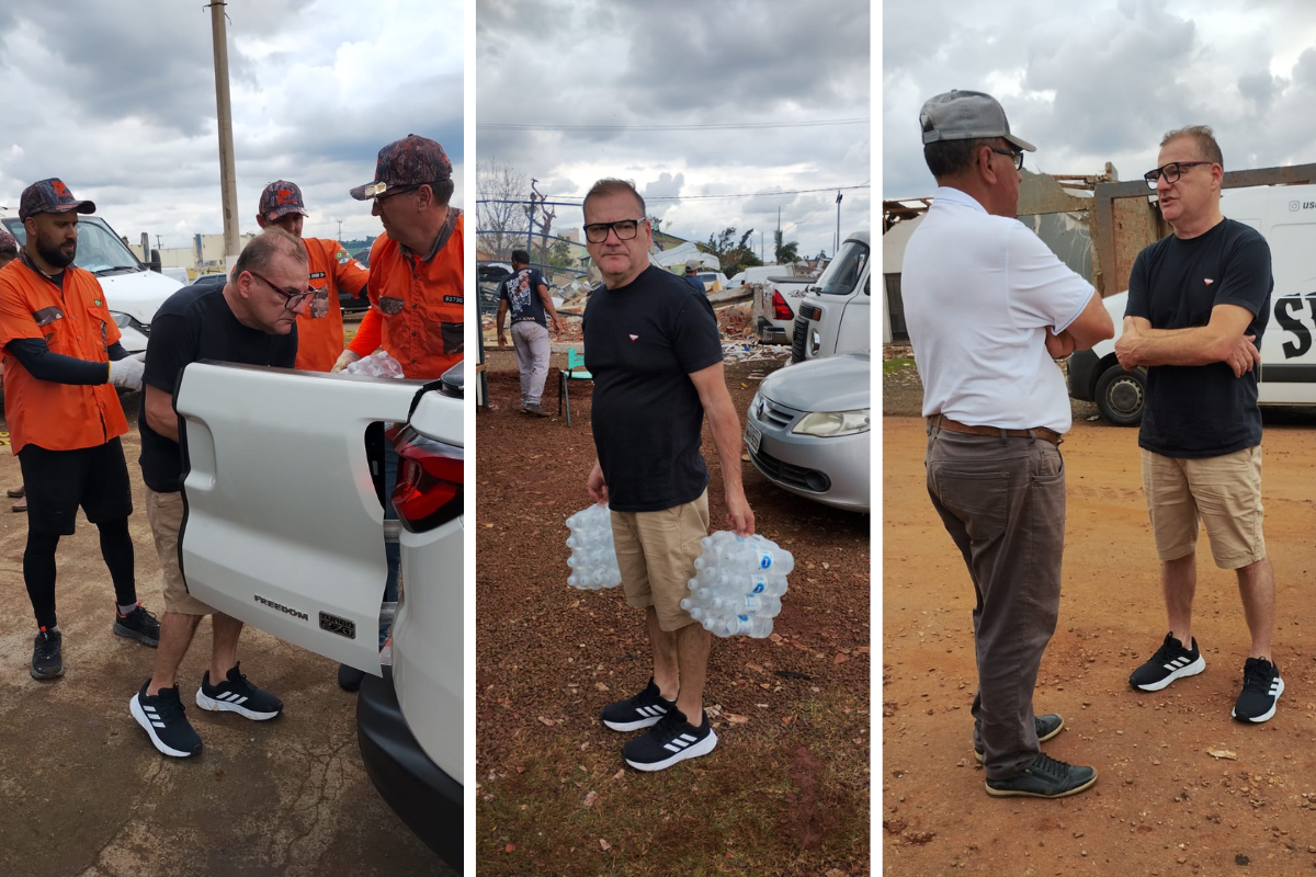 Um casal de Gaspar mobilizou esforços para levar doações até uma das regiões mais atingidas pelo tornado que devastou cidades do Paraná. Sensibilizados com a situação das famílias que perderam tudo, o radialista Jerry Oliveira e a esposa, Jane, decidiram transformar uma viagem previamente marcada em uma ação solidária. Com apoio de empresários, eles transportaram uma carga de água potável, item considerado crítico nos primeiros dias após a tragédia, especialmente diante do grande número de voluntários atuando no local e da instabilidade climática que ainda afeta a região.