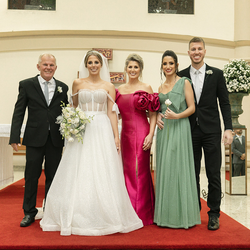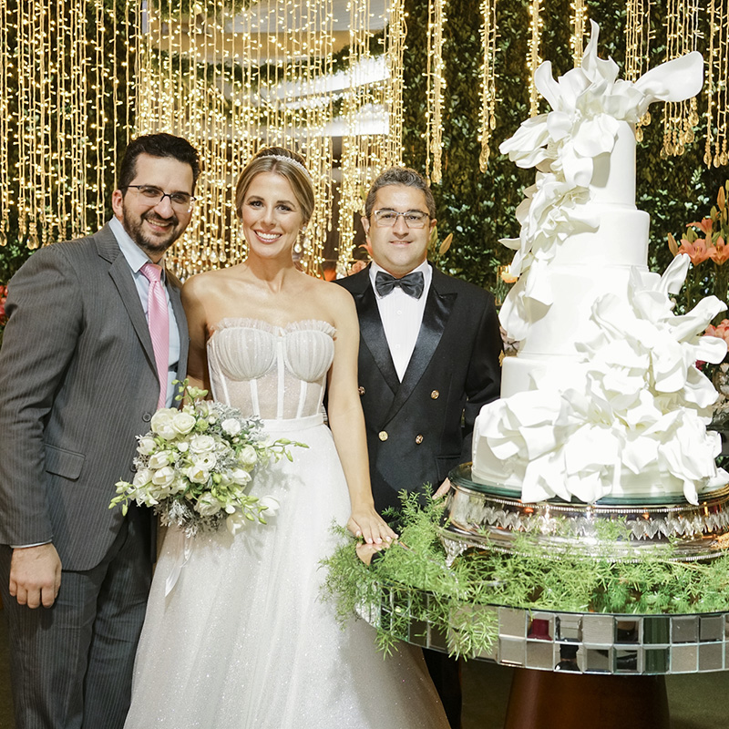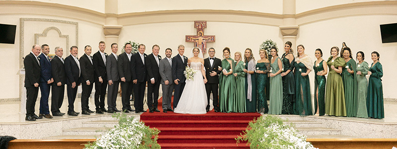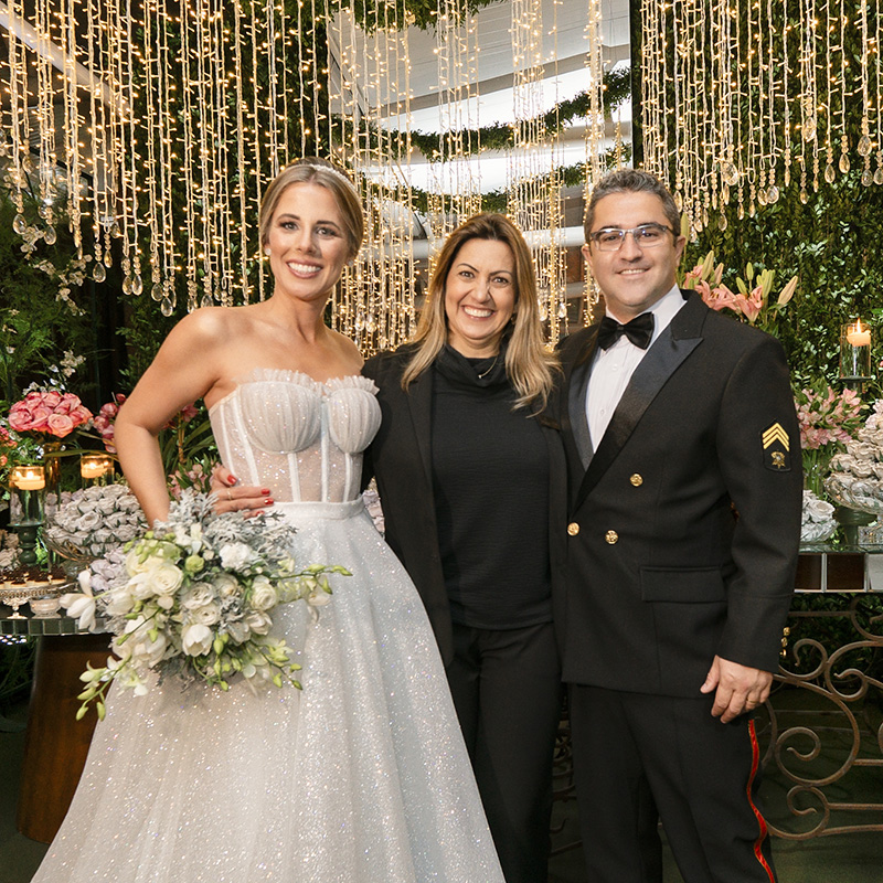 Todos os detalhes foram organizados pela cerimonialista Tati Gonzada, que cuidou de tudo para que a noite fosse super especial. A linda decoração levou a assinatura de Dallarosa Decorações; deliciosos bolo e doces de Confeitaria Zuchi; jantar de Restaurante Questão de Gosto; e animação de Banda Champagne. A data ficará para sempre na memória de todos e eternizada através das fotos de Arte Fotos Retrata e vídeo de Belvedere Films.