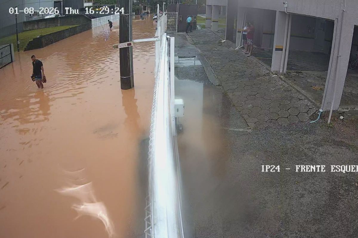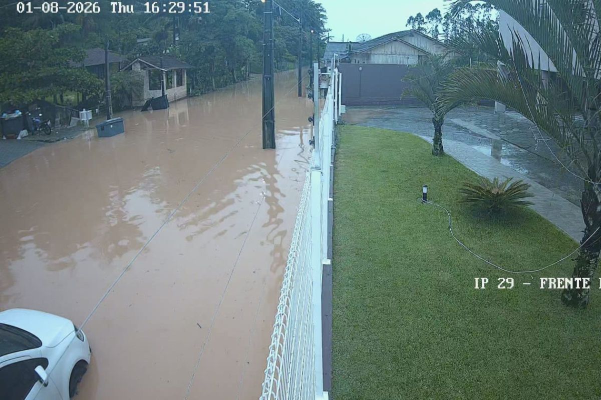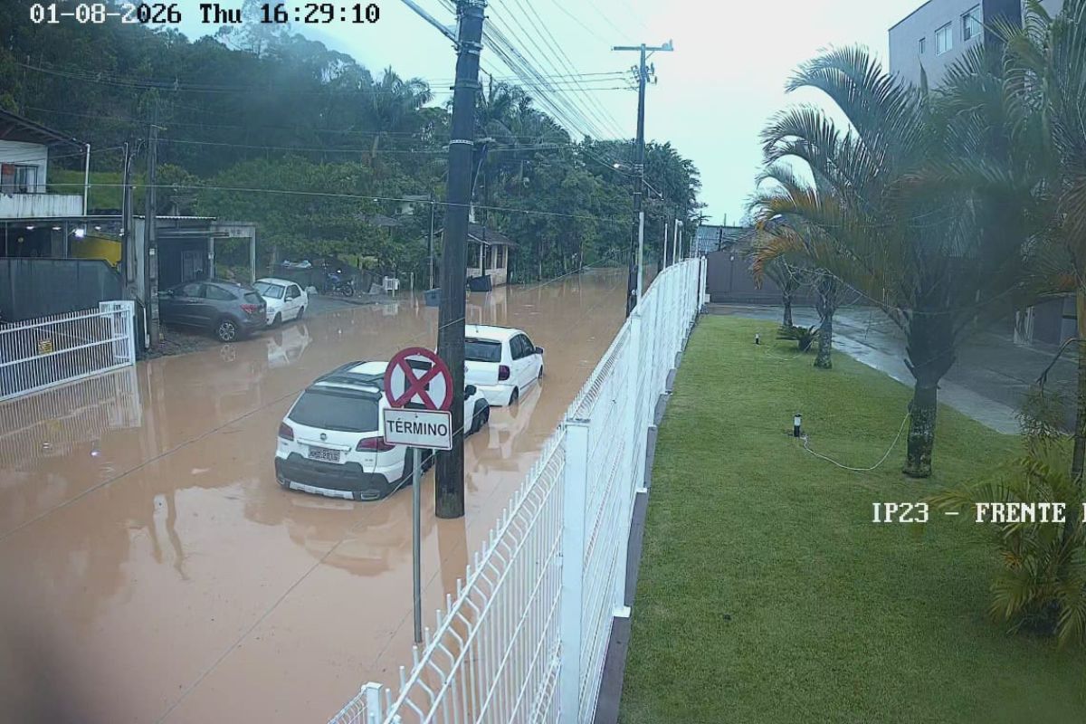 Os moradores da rua Rosalina Theiss, no bairro Gaspar Grande, em Gaspar, voltaram a enfrentar problemas com alagamentos devido à chuva que caiu na cidade na tarde desta quinta-feira, dia 8 de janeiro. Fotos divulgadas por um morador mostram a via tomada pela água. “É assim com qualquer chuva mais forte”, disse.
