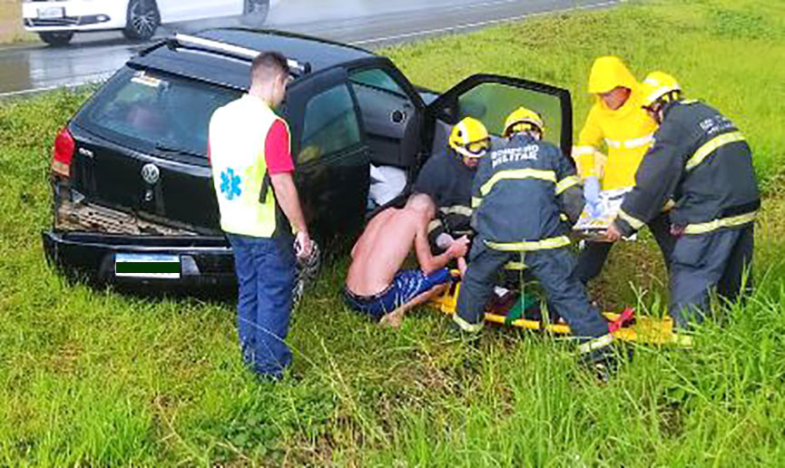 O carro era dirigido por um jovem de 26 anos, que relatou ter perdido o controle do carro, saído da pista e capotado no canteiro central da rodovia.