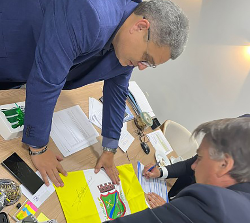 Fotos que circulam pelas redes sociais mostram o ex-presidente do Brasil, Jair Bolsonaro, segurando uma camisa do Clube Atlético Tupi e assinando a bandeira de Gaspar. Um grupo esteve em Brasília essa semana e entregou o presente a Bolsonaro. A foto foi feita nesta terça-feira, dia 4 de julho.
