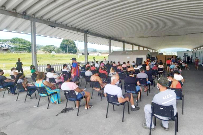 Conforme informações repassadas pela Prefeitura de Gaspar, todas as pessoas que estão no local serão atendidas. O tempo médio de espera é de aproximadamente 5 ou 6 horas.