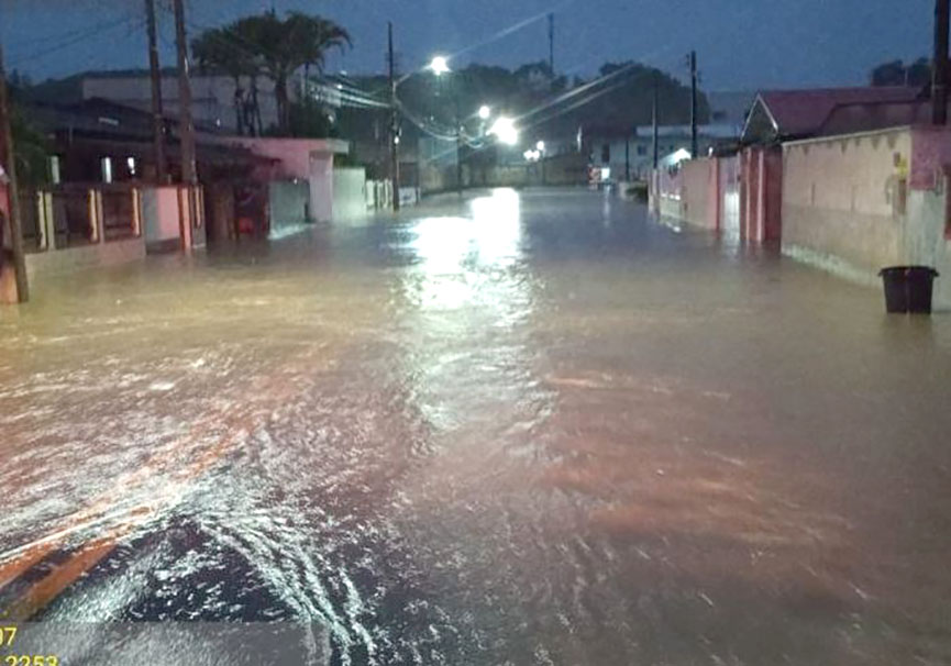 Nas últimas seis horas, o volume de chuva foi equivalente a 100mm em Gaspar. Entre as ocorrências já registradas estão deslizamentos de terra e alagamentos em via pública.