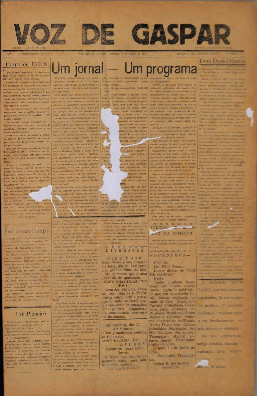 Assim como O Gasparense, o jornal A Voz de Gaspar tinha periodicidade para veicular instável. Naquela época, toda a produção do material era manual, com impressão tipográfica.