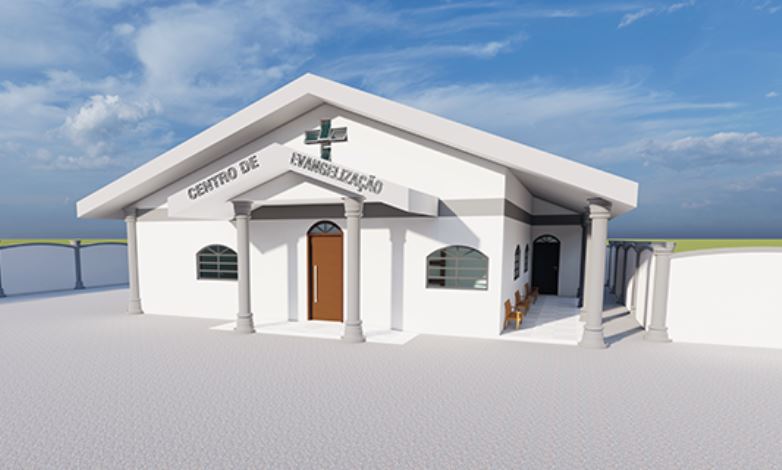 Uma linda construção feita em um andar, com colunas redondas e varanda que lembram a estrutura da igreja, será iniciada em agosto. O projeto foi uma doação de Minuzzi Engenharia e já está pronto. O Centro de Evangelização vai abrigar salas de catequese, auditório, sala de reunião e secretaria. “Hoje, nossas crianças têm aula de catequese dentro de salas na igreja e nossas reuniões são feitas dentro do salão. Queremos proporcionar mais qualidade e dar mais conforto para as famílias. Esse é um projeto pensado no presente e no futuro, e tenho certeza de que vai ficar muito lindo”.