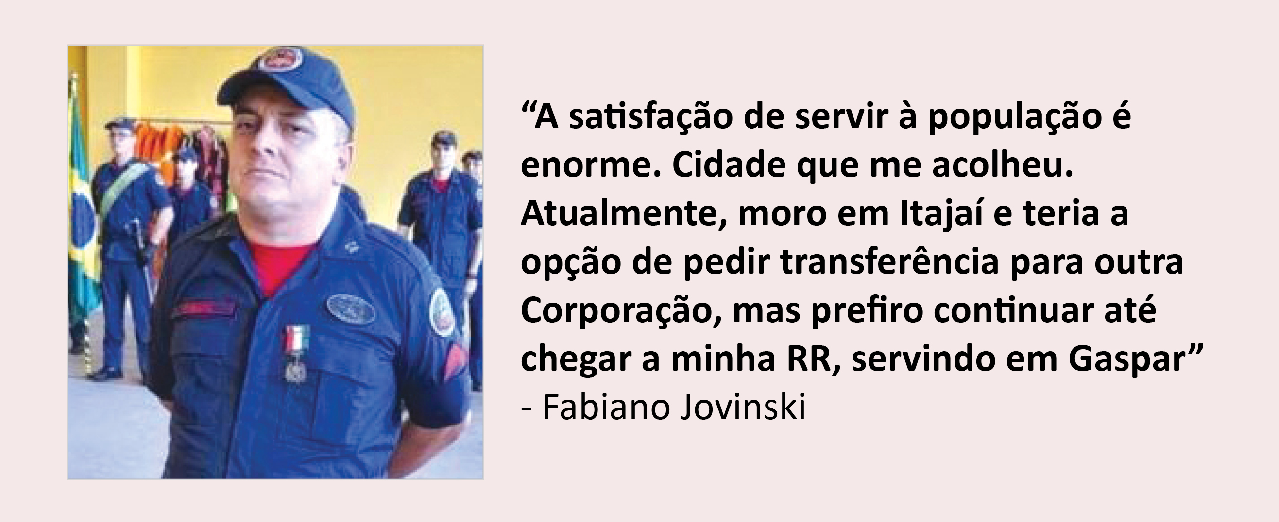 Fabiano Jovinski é sargento no Corpo de Bombeiros em Gaspar. Ele trabalha na cidade há mais de 10 anos e como bombeiro há 26. Nesta jornada já próxima da aposentadoria, atendeu diversas ocorrências marcantes. Mas, sem dúvida, a mais dolorosa foi aquela em que perdeu um colega de farda.