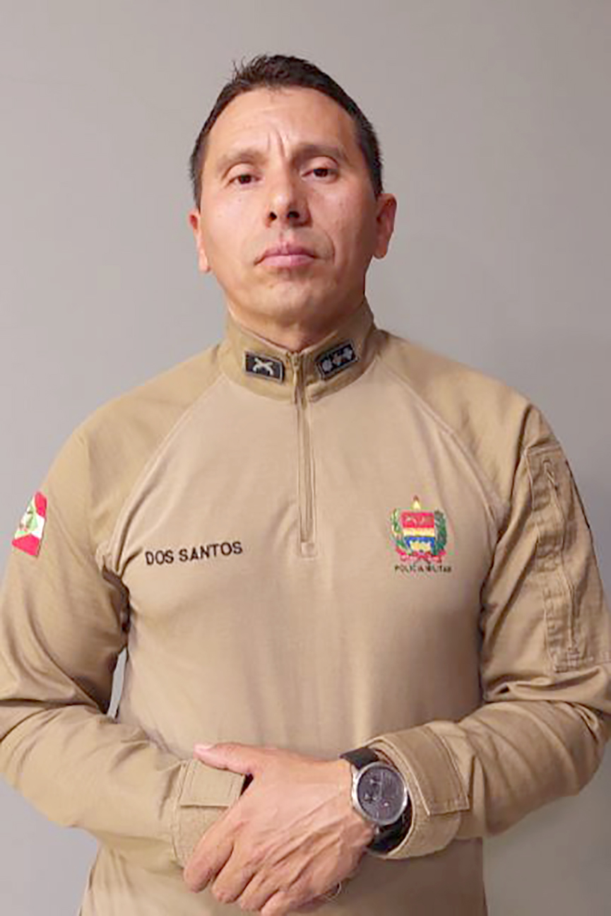 Major Leandro dos Santos tem 45 anos e é natural da cidade de Soledade, no Rio Grande do Sul. Fez curso de Formação de Soldados em Blumenau; é formado em Direito pela Furb; e tem pós-graduação em Gestão e Segurança Pública pela Faculdade Barddal, de Florianópolis.
