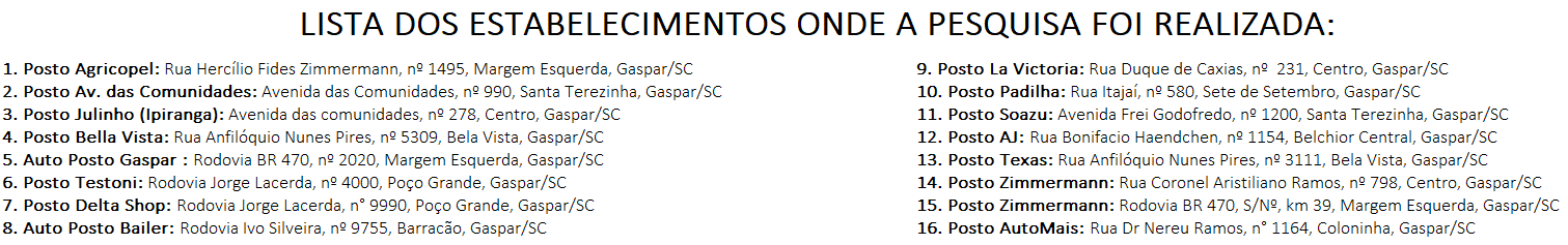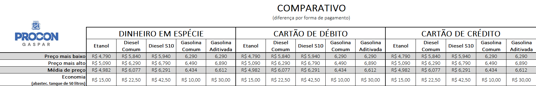 A Superintendência da Coordenadoria Municipal de Defesa do Consumidor, Procon de Gaspar, divulgou a pesquisa de preços dos combustíveis referente ao mês de janeiro. O levantamento foi realizado na segunda-feira, dia 19, em 16 postos do município e analisou os valores praticados para diferentes tipos de combustíveis e formas de pagamento.