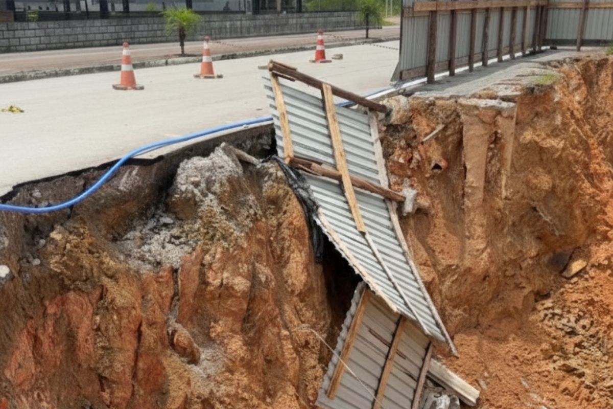 O embargo foi feito pela Secretaria de Planejamento Territorial e é válido até que sejam executadas as intervenções necessárias. Neste momento, os trabalhos estão voltados para o monitoramento da movimentação do solo e na garantia da sua estabilidade. Depois, será feita a recuperação da calçada e ajustes na drenagem e abastecimento de água. De forma paralela, a prefeitura executou medidas emergenciais para garantir a segurança de quem passa, com isolamento com tapumes e criação de uma área provisória para pedestres sobre a via.