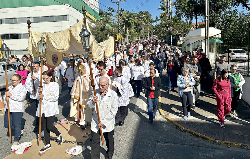 A emoção tomou conta de centenas de pessoas que participaram de mais uma celebração de Corpus Christi Gaspar. Às 9h, os fiéis participaram de uma missa na Igreja Matriz São Pedro Apóstolo, celebrada pelos freis Pedro da Silva, Aldo e Jhones; e, por volta das 10h seguiram em procissão pelo Centro da cidade.