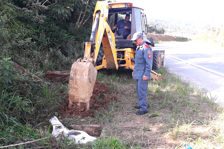 Os bombeiros solicitaram o apoio de uma máquina retroescavadeira do Samae de Gaspar para conseguir abrir a lateral do bueiro e retirar o animal em segurança. A vaca foi resgatada e ficou aos cuidados do proprietário.