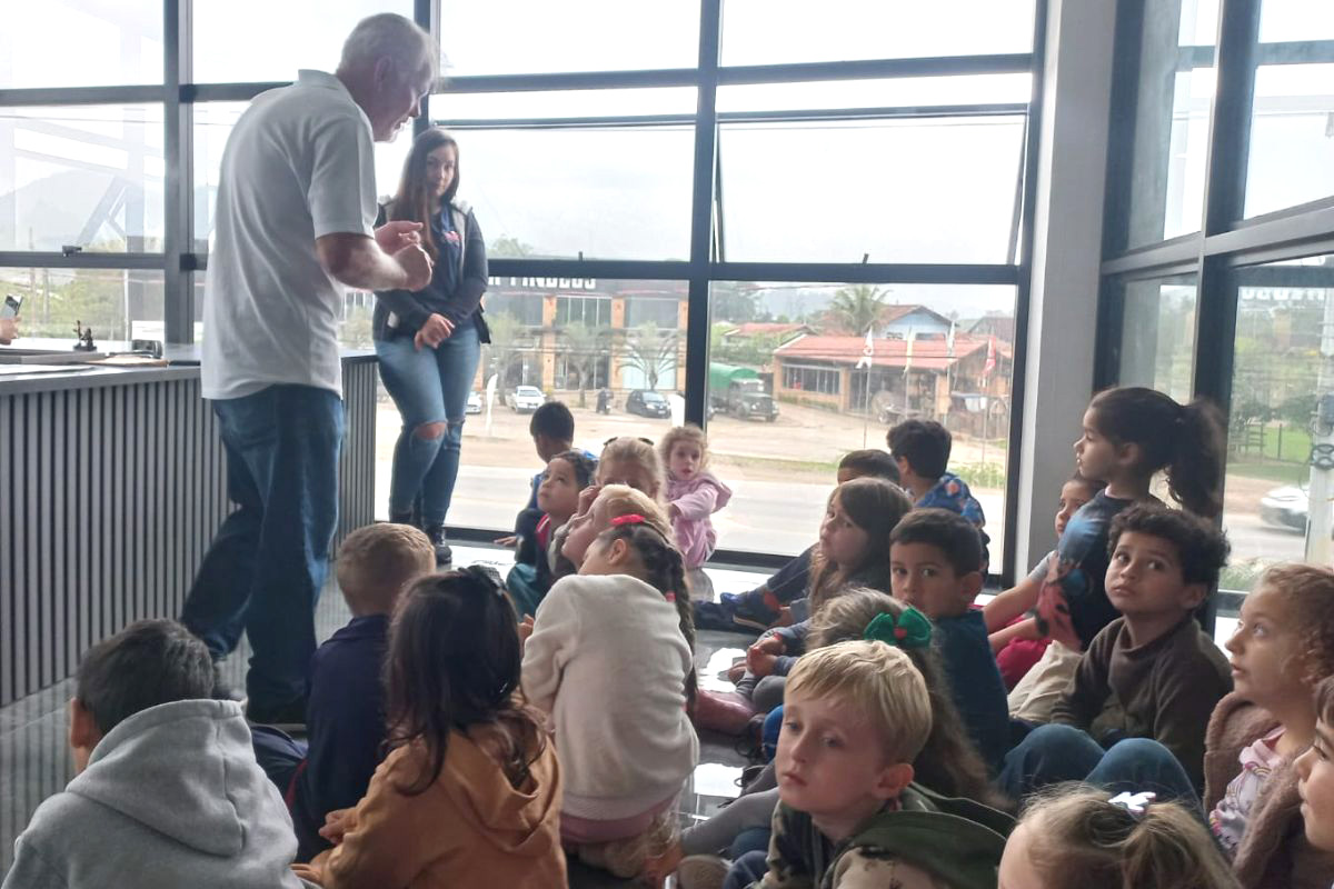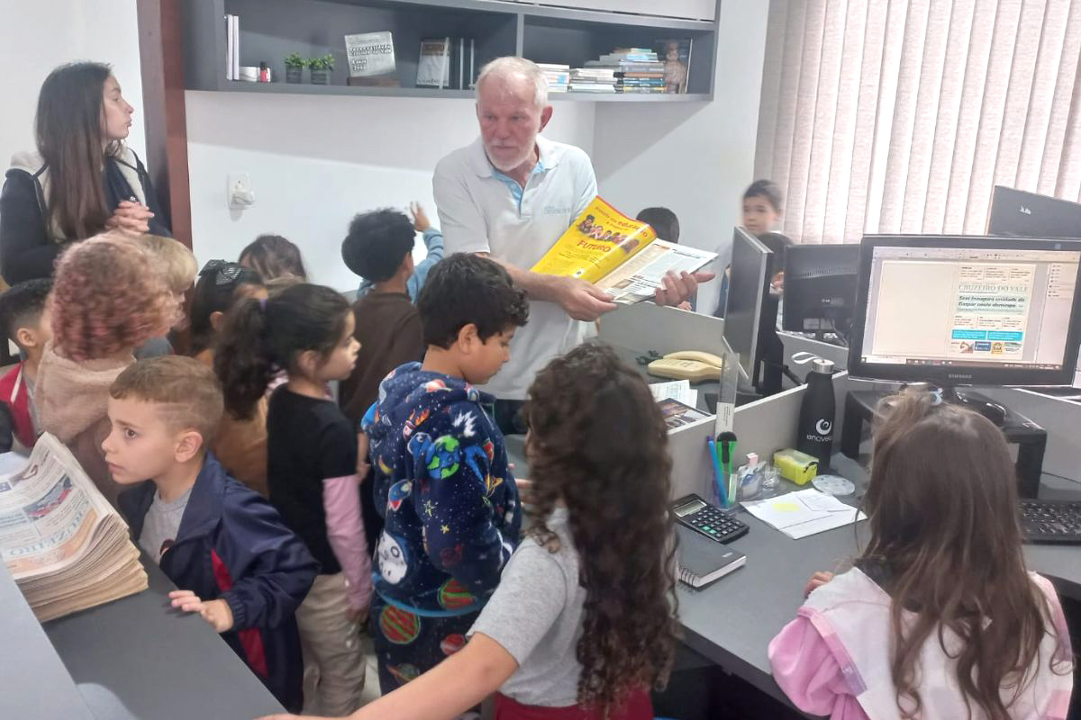 A redação do Cruzeiro do Vale recebeu uma visita especial. Na sexta-feira, dia 29 de agosto, crianças entre cinco e seis anos do CDI Vovó Lica estiveram no bairro Poço Grande, em Gaspar, para conhecer o funcionamento do jornal mais antigo da cidade.