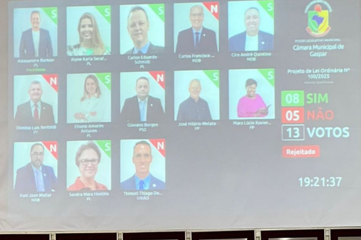 Os vereadores Dionísio Bertoldi (PT), Giovano Borges (PSD), Roni Muller (MDB), Carlos Bornhausen (MDB) e Thímoti Deschamps (União) votaram contra.
