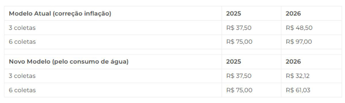 Na nova metodologia, seriam criadas categorias específicas (como residencial, social, público, comercial 1 e 2, e industrial). Famílias de baixa renda teriam acesso à Tarifa Social, com desconto para quem estivesse escrito no CadÚnico; e a cobrança seria feita com base em critérios como consumo da água, quantidade de vezes que o caminhão passa no endereço e volume do lixo.
