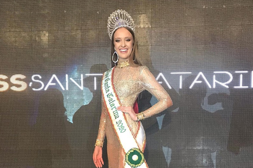 A bela Milena Sens, Miss Blumenau, conquistou o título de Miss Santa Catarina 2020. Ela foi escolhida entre outras 13 candidatas durante concurso realizado na noite de sábado, dia 24 de agosto, em Balneário Camboriú. A segunda colocação ficou com a Miss Otacílio Costa, Bruna Valim; e a terceira com a Miss Itajaí, Babi Sezaro.