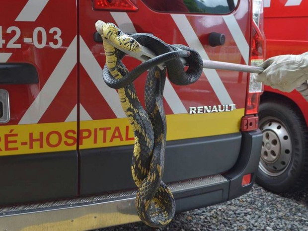 A cobra não é venenosa e é bastante comum na região, mas pode atacar humanos por própria defesa. Os bombeiros fizeram a captura e devem soltá-la na região serrana da cidade.