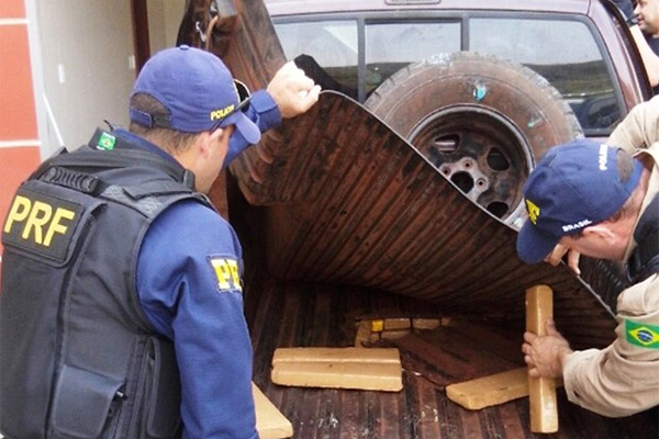 No domingo (16), por volta das 14h, a PRF/SC encontrou 90 quilos de maconha escondidos em um fundo falso de uma caminhonete na BR-282, em Alfredo Wagner, na Grande Florianópolis.
