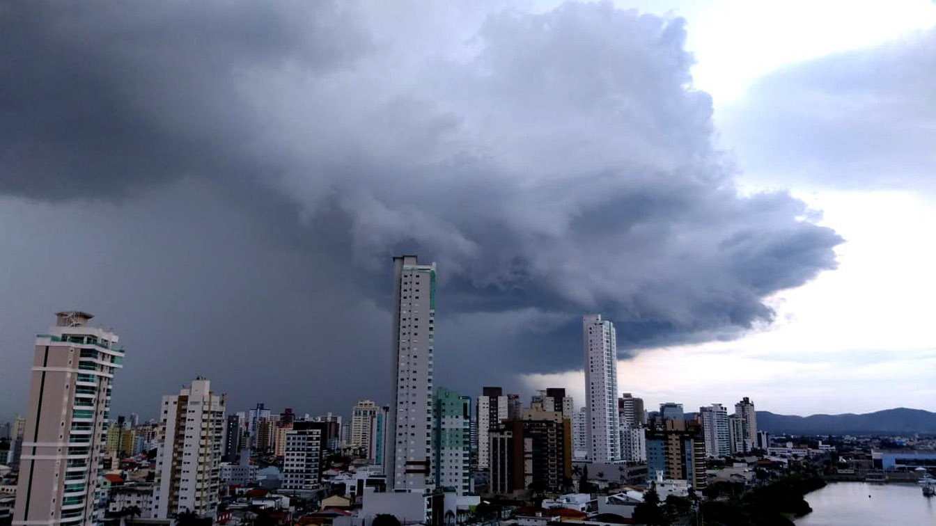 A chegada de uma forte tempestade em Itajaí foi registrada com a presença de uma nuvem ‘cumulonimbus’. Caracterizada por ter um grande desenvolvimento vertical, ela foi captada no início da tarde desta terça-feira, dia 7 de janeiro, pelo repórter cinematográfico Luis Souza.