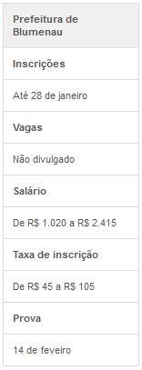 A prova objetiva será aplicada em 14 de fevereiro, no campus I da Universidade Regional de Blumenau (Furb) e o gabarito estará disponível para consulta no dia 15, no site da prefeitura. A lista dos aprovados será divulgada em 23 de fevereiro.