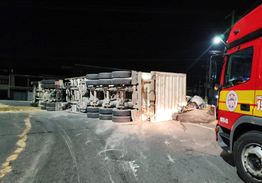 Um caminhão carregado de lixo reciclável tombou em Gaspar na madrugada desta sexta-feira, dia 7 de junho. O acidente aconteceu por volta das 2h30 no trevo da Avenida Helmuth Wehmuth.